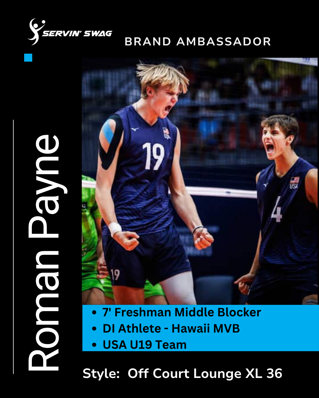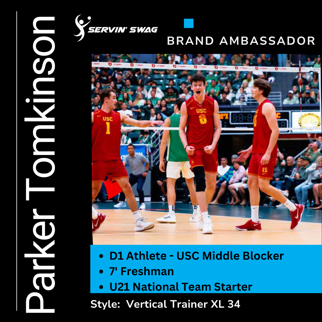 Parker Tompkinson is a 7’ Freshman middle blocker as part of the D1 men’s volleyball team at USC. He was a starter on the U21 Men’s National Team and part of the gold medal NORCECA team. Hailing from Carlsbad CA where he recorded over 1000 kills, he comes from an elite volleyball family including his sister and parents. He is very excited to see where volleyball takes him and we are beyond thrilled to add Parker to our team of Brand Ambassadors and watch his career grow!